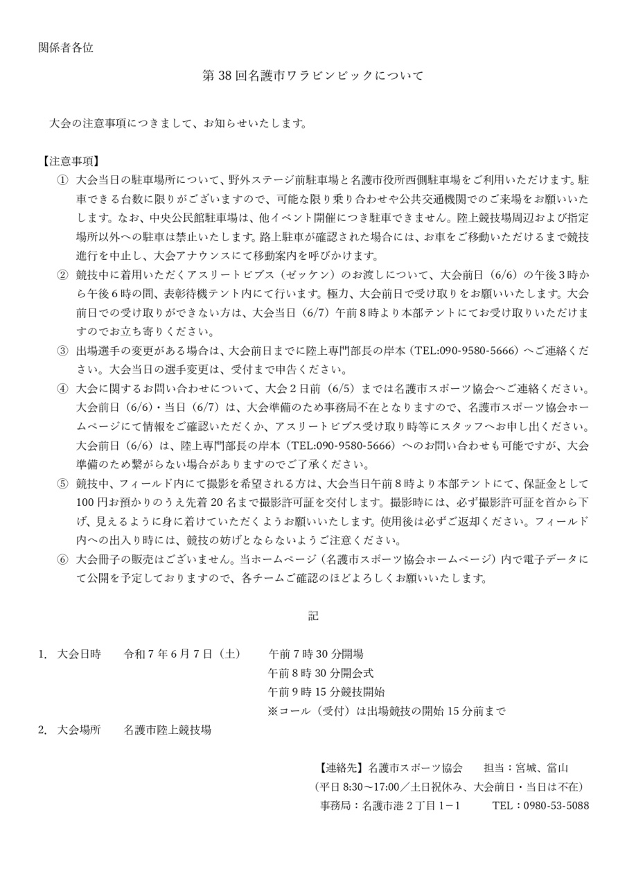 第38回名護市ワラビンピック 注意事項①