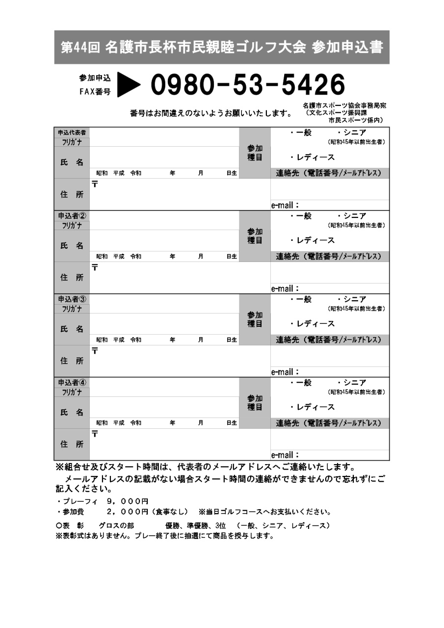 【参加募集】第44回名護市長杯市民親睦ゴルフ大会
