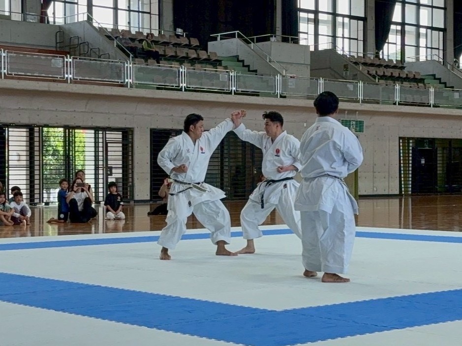 講師は、2020東京オリンピック金メダリストの喜友名諒さん、世界空手道選手権大会金メダリストの金城新さん・上村拓也さんをお招きしました。