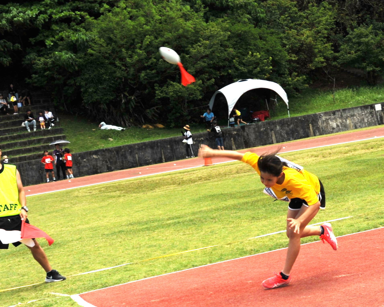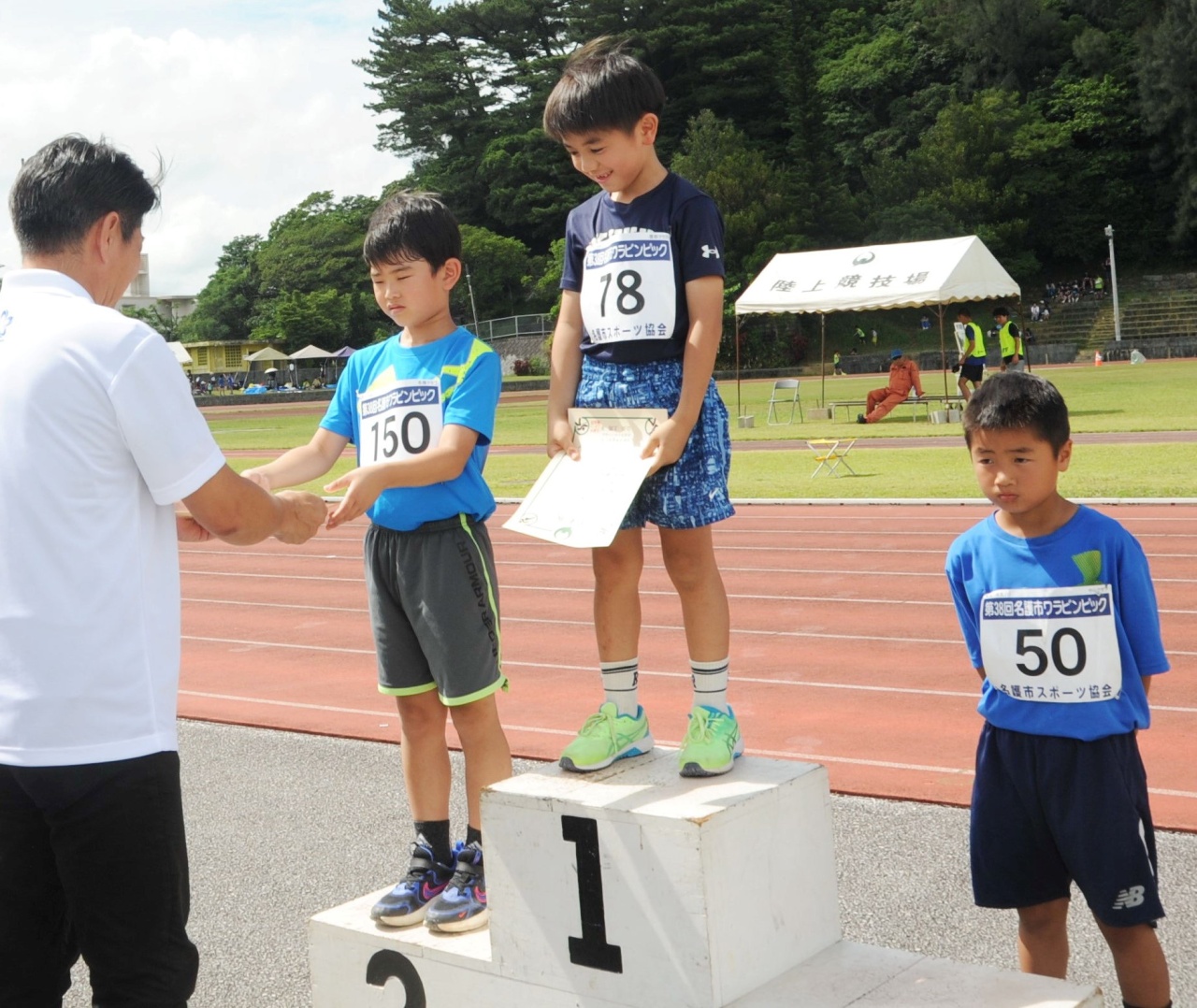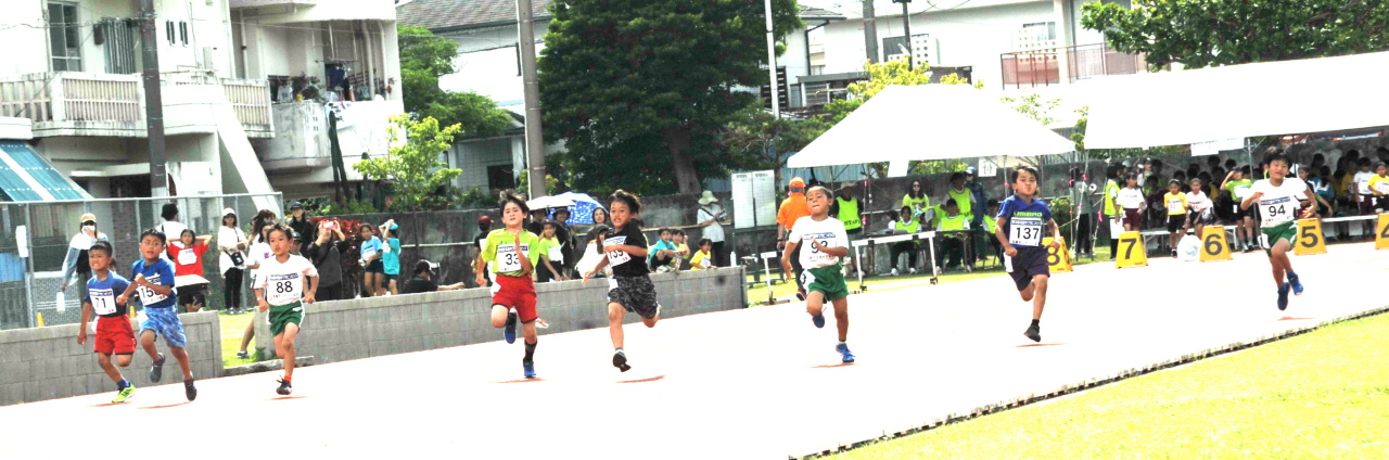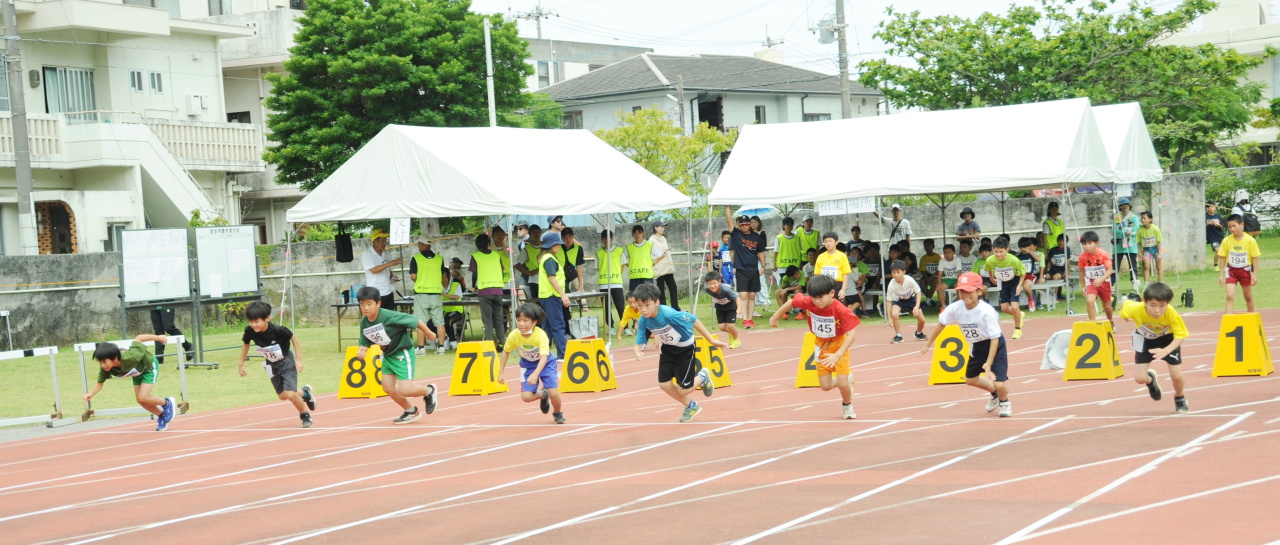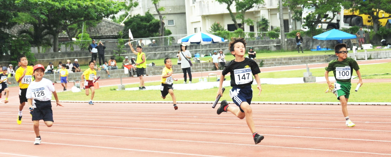 6月7日(土)名護市陸上競技場にて、第38回名護市ワラビンピックを開催いたしました。雨予報だったこともあり開催すら危惧されていた今大会でしたが、当日は子どもたちのパワーが伝わったのか雨雲を寄せ付けず、プログラム変更等もなく無事予定通りに大会が開催されました。