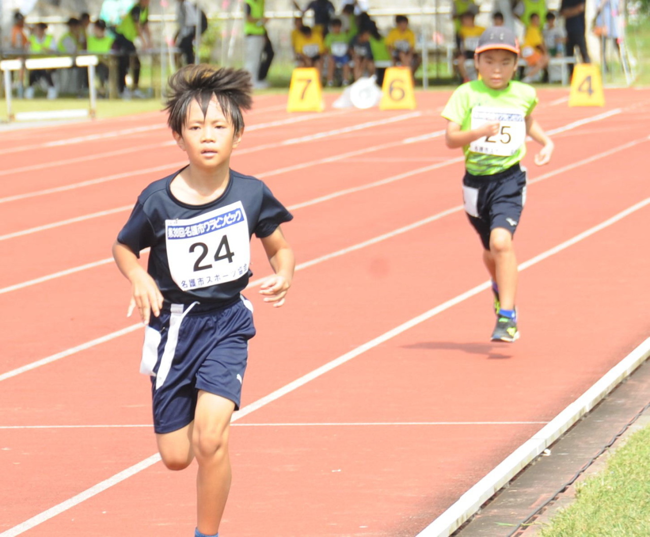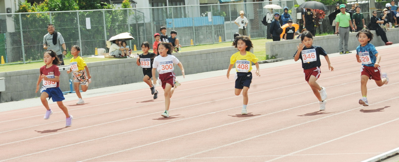 30度の真夏日の中、子どもたちが練習の成果を精一杯発揮し、大会新記録を上回るタイムが計21個次々と生まれ、結果的に9種目の大会新記録が更新される大会となりました。