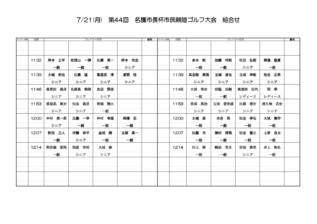 第44回名護市長杯市民親睦ゴルフ大会 組み合わせについて