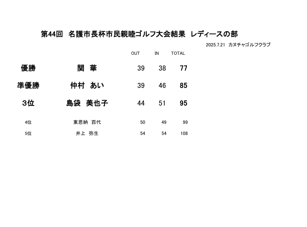 第44回名護市長杯市民親睦ゴルフ大会 大会結果